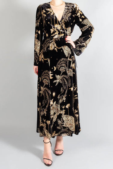 The Waimari's beachy Sireneuse black dress showcases romantic eyelet embroidery on airy black cotton. This long strap dress with transparency fits close to the body at the top and is loose at the bottom.